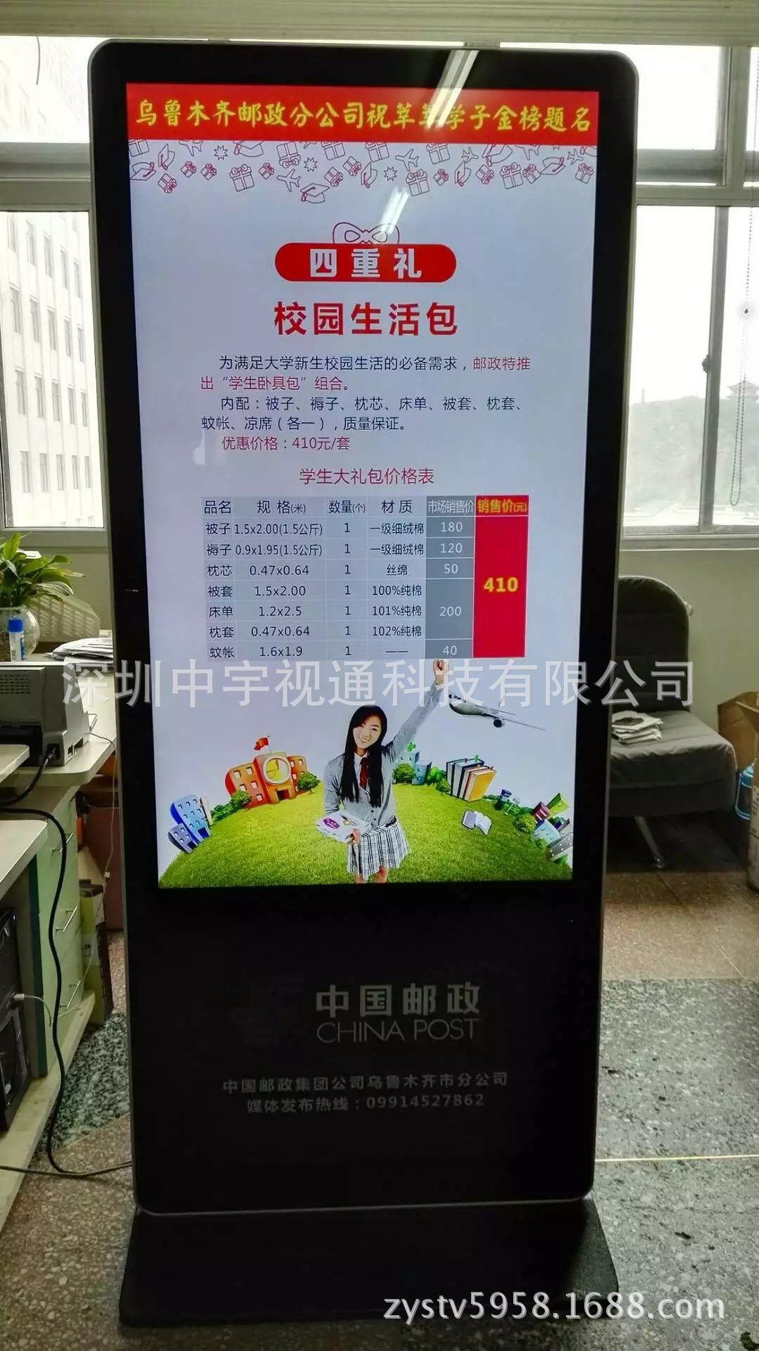 中宇視通55寸立式網絡廣告機入住新疆烏魯木齊郵政局