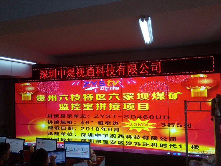 貴州六枝特區(qū)六家壩煤礦監(jiān)控室46寸拼接屏項(xiàng)目選用深圳中宇視通科技合作,項(xiàng)目與6月21號(hào)順利通過驗(yàn)收。