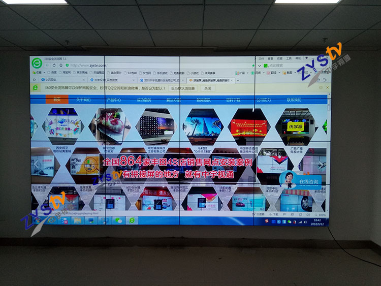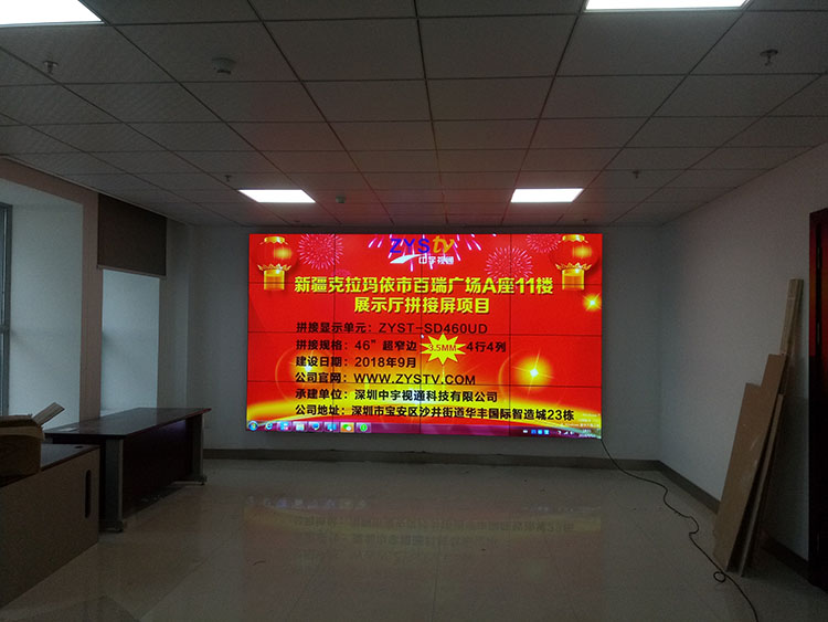 新疆克拉瑪依市百瑞廣場A座11樓展示廳46寸拼縫3.5mm超窄邊拼接屏項目,安裝調試完成并順利通過驗收,中宇視通全體同事從深圳發來賀電!