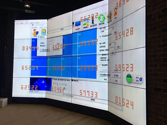 此次選用的是深圳市中宇視通科技有限公司;55寸3.5mm拼縫;液晶拼接屏,采用弧形機柜安裝,弧線形外觀更美,可以帶來更逼真的畫面臨場感!項目完工之后,得到了酒店領導的高度贊賞!