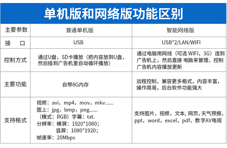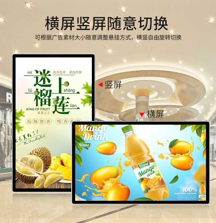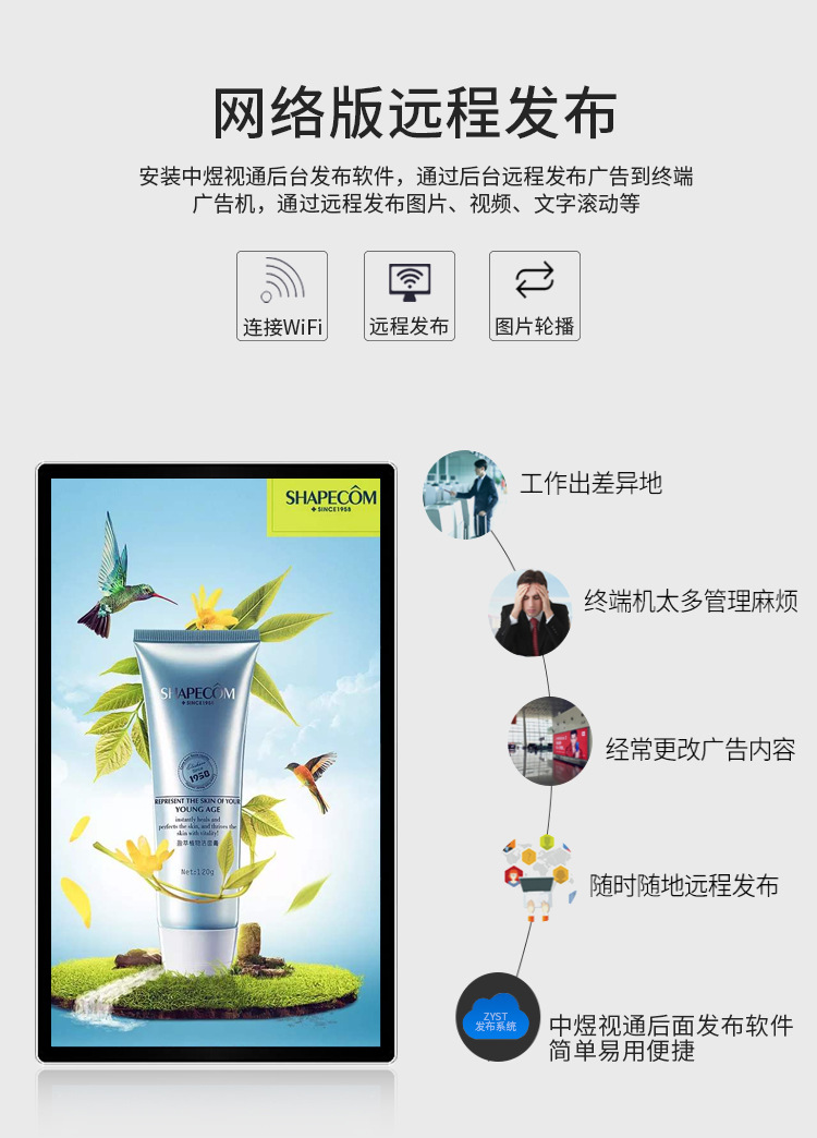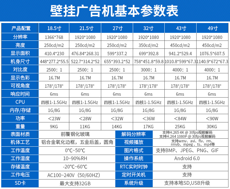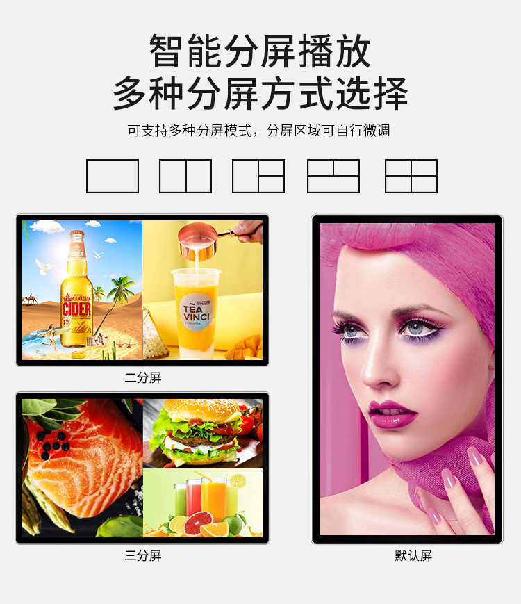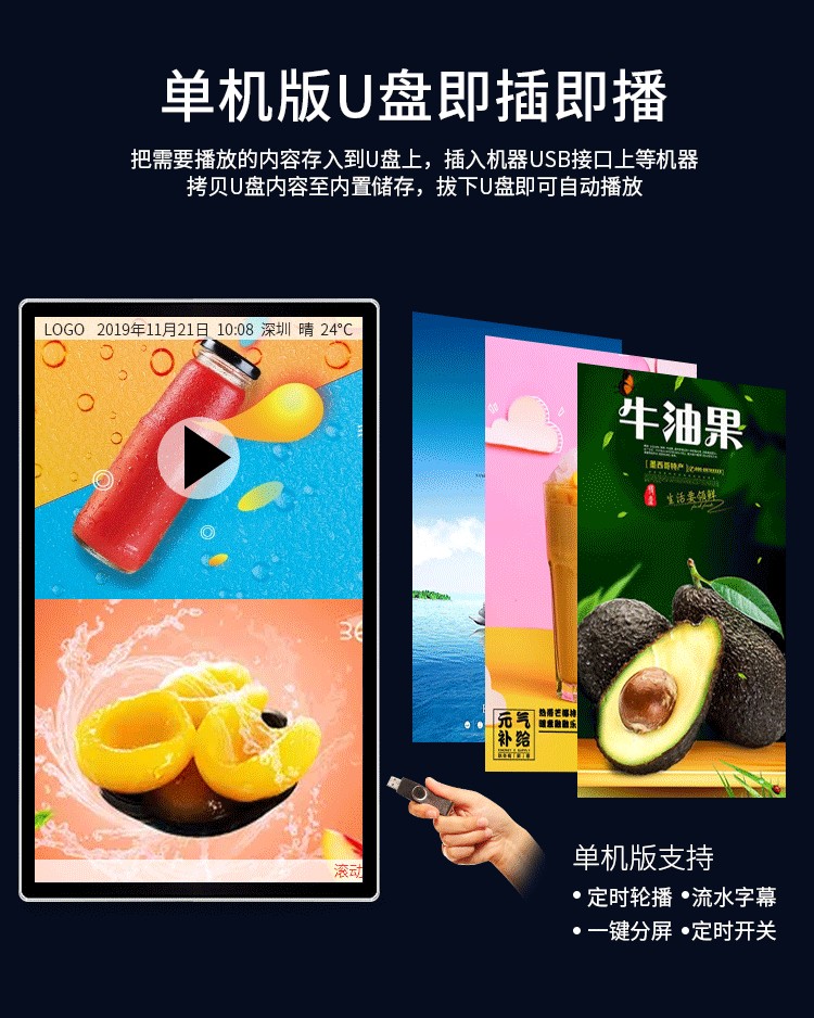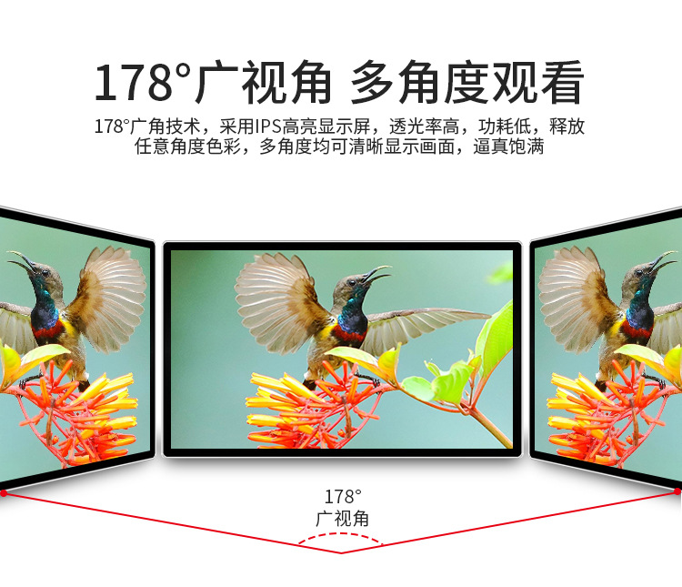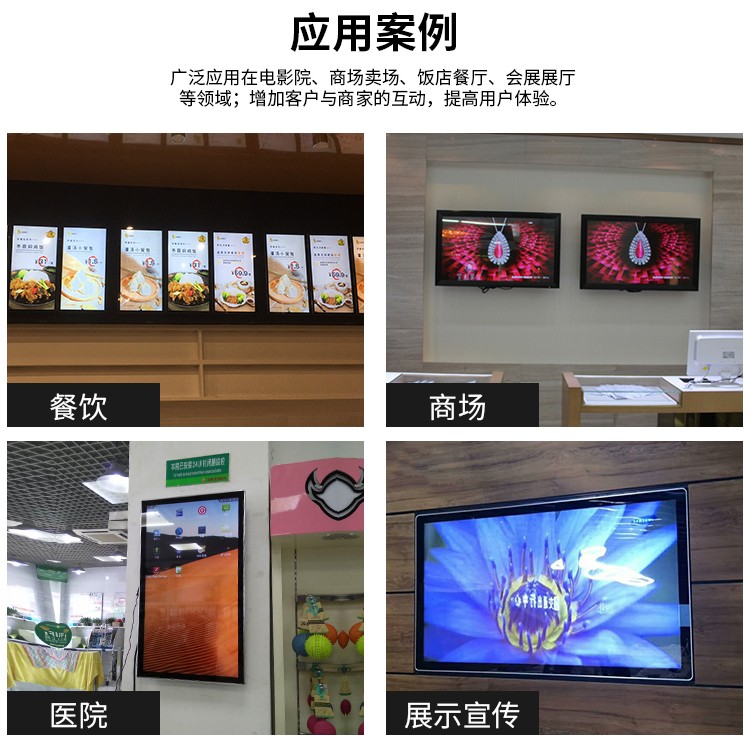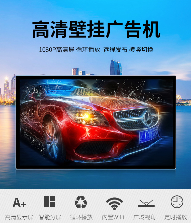 18.5寸壁掛廣告機采用專業(yè)級工業(yè)液晶屏,視頻圖像展現(xiàn)清晰、自然,能夠更好的表現(xiàn)廣告細(xì)節(jié);機身設(shè)計外觀時尚、大方,超薄,使用方便、美觀,采用全新環(huán)保技術(shù),穩(wěn)定性好,能夠適應(yīng)并在惡劣環(huán)境中正常工作。正常使用情況下,可達(dá)60000小時以上的超長的使用壽命,并且能夠7*24小時不間斷工作。目前,液晶廣告機憑借優(yōu)良的顯示性能,已經(jīng)成為人們認(rèn)同的理想的“第五大媒體”顯示設(shè)備。