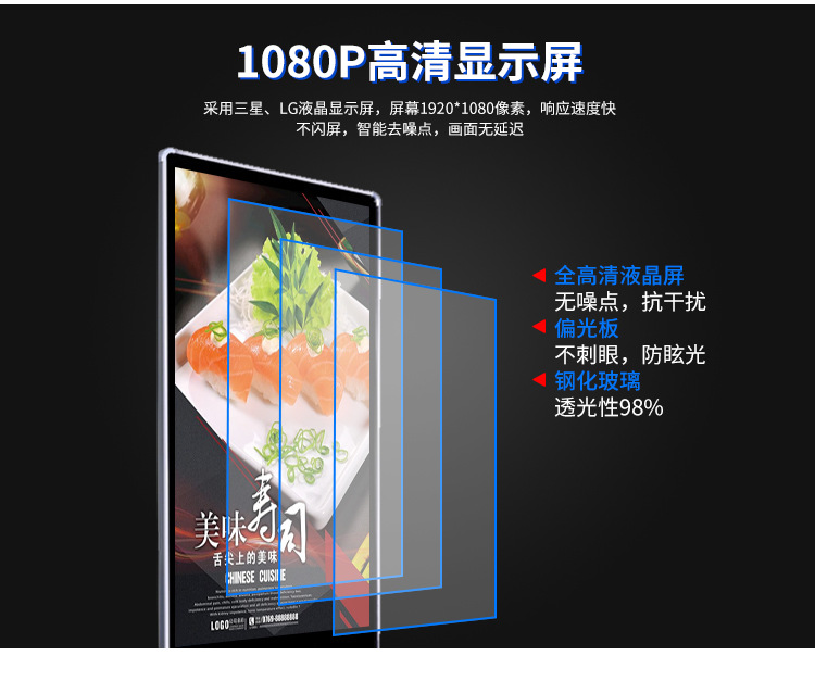 工業級電源系統,自帶恒溫散熱系統,可滿足7*24小時連續不間斷開機播放。